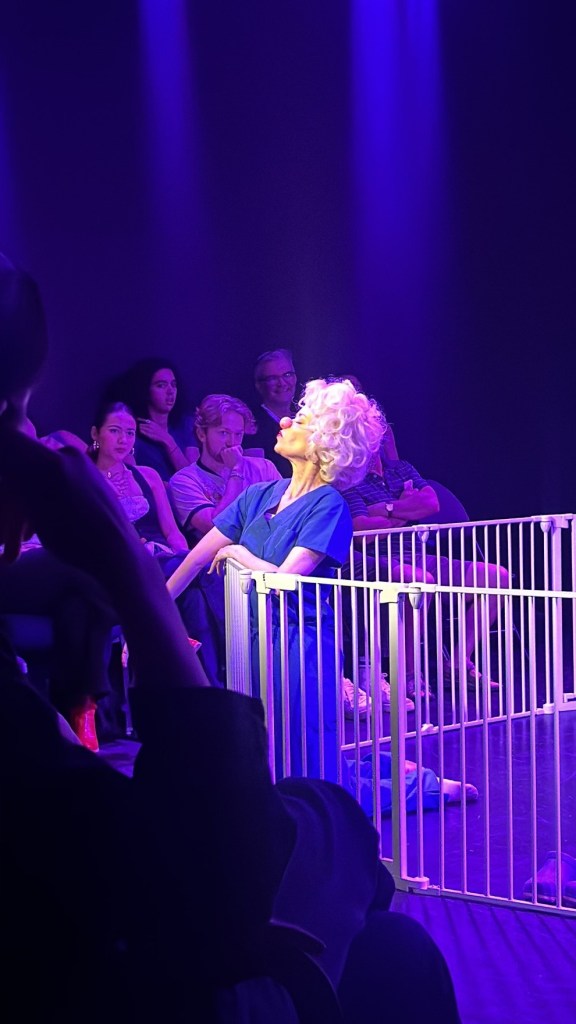 “…This unadorned Bella has no wig, no nose, no blue scrubs, and no high-pitched voice. She finally tells the truth about herself and apparently wins her own freedom in that way, dancing around to an instrumental version of “The Sound of Silence” as she sheds the role she’d been forcing upon herself. This is the best, most intriguing version of Bella, though the audience unfortunately sees very little of it. Nevertheless, the show succeeds in being a refreshingly offbeat, charming showcase for Noble’s undeniable talents.”