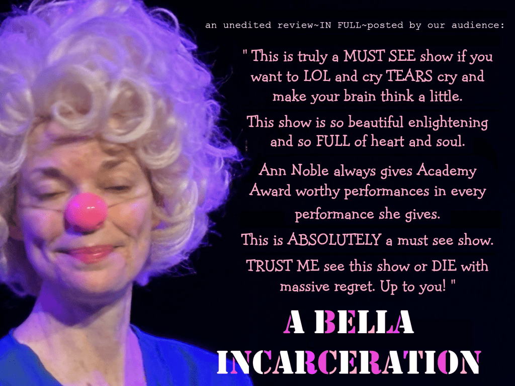 Neglected and deeply misunderstood, a clown conjures her favorite female radicals from history in order to make sense of her own absurdity, landing Bella in her present confinement behind bars. Theatre Ghosts presents the revival of Echo Theatre Company’s A Bella Incarceration, a new solo play by veteran Los Angeles playwright and performer Ann Noble.