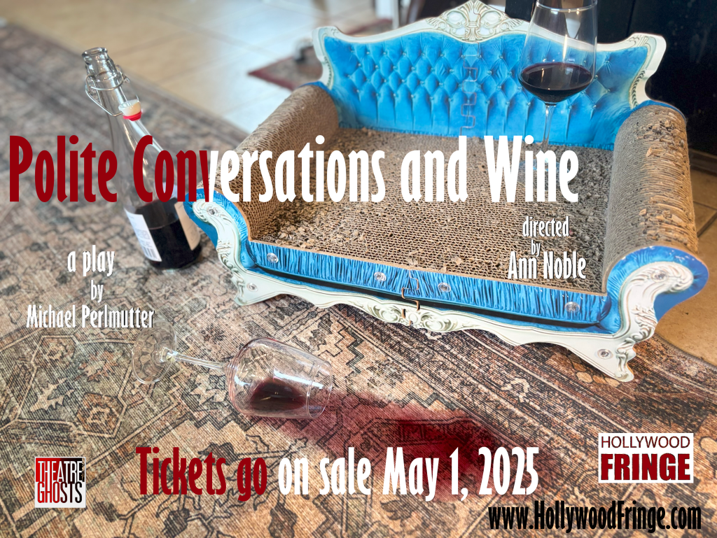 Looking back, was it something you said or something you did? And why can we never remember things in order? Wine’ll do that. So will family. Mix them together…and just hope the stains’ll come out of the rug. Theatre Ghosts presents Michael Perlmutter’s Polite Conversations and Wine, a memory play, under the direction of Los Angeles all-star and favorite, Ann Noble. Starring Amy Marcs, Leah Jarvik, Mikki Hernandez, and Robin McDonald. Performances take place at the Broadwater Black Box Theatre in Hollywood from June 8 through June 27 as part of the Hollywood Fringe Festival 2025.