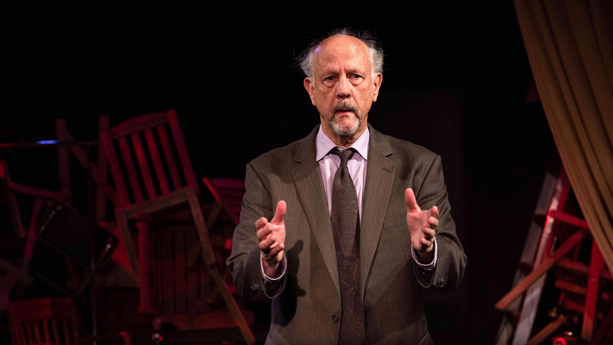 A love letter to the theatrical experience that almost defies description. It was written by Olivier Award-nominated playwright John Kolvenbach and features Jim Ortlieb who delivers “a tour-de-force performance as a man desperate for connection, bent by isolation, and deeply in love with the audience itself.”